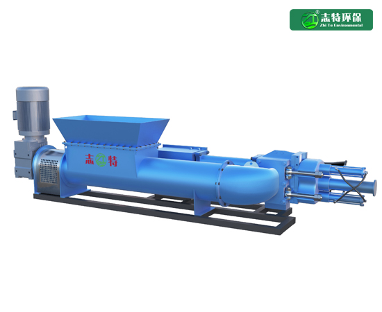 v 占地面積小,輸送量大,輸送效率高:該設備采用強制喂料螺旋作為該輸送泵的進料方式,可保證輸料泵缸體每次動作,輸料泵管道內都有充足的餐廚垃圾等物料,相同設備體積下輸送量幾乎是單缸式餐廚垃圾輸料泵的兩倍,